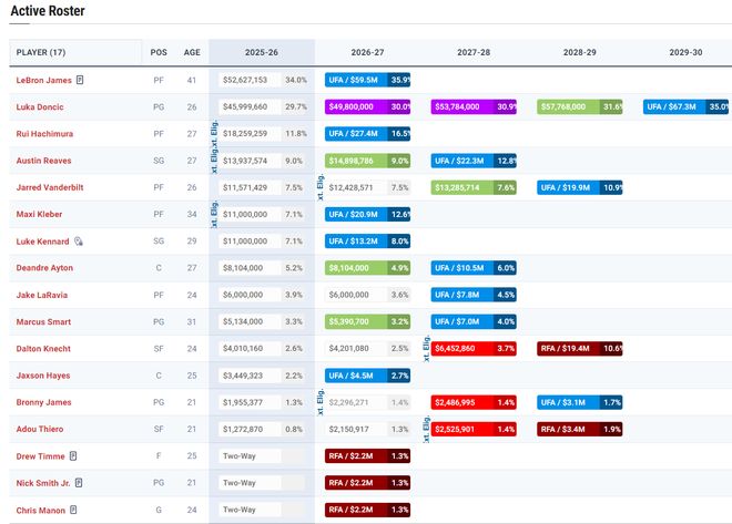 美媒为湖人换肯纳德评A!14+3名单存1空位 湖媒列10潜在买断人选