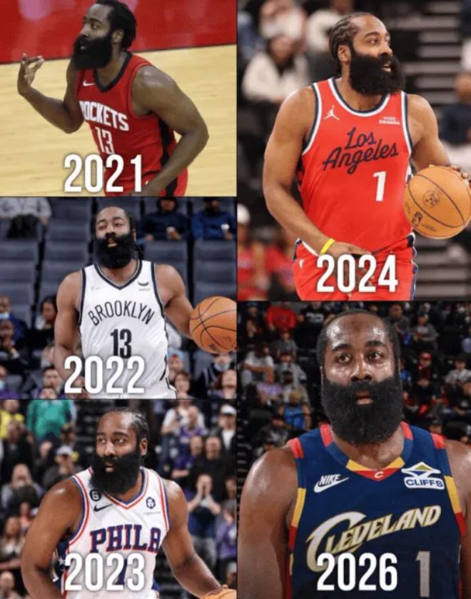 从雷霆的最佳第六人,到火箭的MVP,再到篮网费城快船的“流浪汉”,如今到克利夫兰的“救火队员”。哈登的故事从来不是爽文剧本,他没有詹姆斯那种“回家即夺冠”的完美弧光,没有科比二十年一城的专属忠诚,也没有库里从一而终的童话结局。