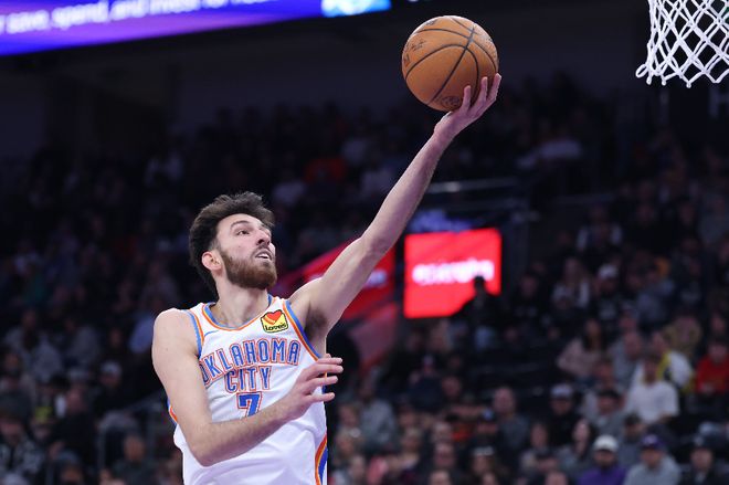雷霆这边,以赛亚-乔5中3得到11分,切特-霍姆格伦独木难支,次节连得11分带队追分,半场8投5中砍下14分5篮板。