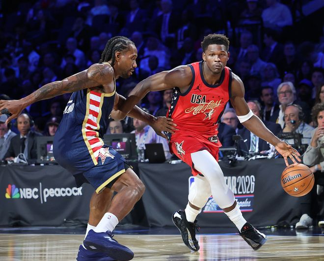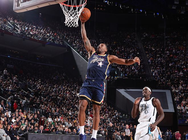 率先开打的是世界队vs新星队,两队打了12分钟后32-32战平,进入加时赛,加时赛中新星队先拿到5分赢下比赛,最终新星队37-35击败世界队。新星队方面:爱德华兹打了9分4秒,9中5(三分7中3)得到13分2板,布克打了10分17秒,5中2(三分3中1)得到5分1板4助。世界队方面:文班打了9分47秒,5中4(三分2中2),4罚4中,得到14分6板3帽,唐斯打了7分54秒,4中3(三分3中2),2罚2中,得到10分1板。