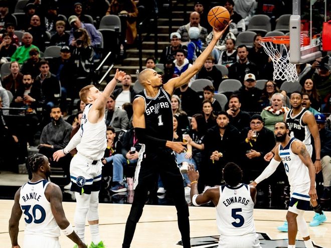 本赛季,在文班亚马带领下,马刺在前三分之二赛程取得38胜16负的战绩,西部第二也是联盟第三,落后西部第一雷霆3个胜场。但本赛季马刺和雷霆5次相遇(由于NBA杯赛,多打了一场),马刺赢了4场。马刺唯一一场输给雷霆的比赛,当赛后队友和雷霆球员友好客气寒暄时,文班亚马扭头就走。当两队首次相遇(雷霆彼时24胜1负),文班亚马专挑雷霆复出,而且还是替补身份,带队击败雷霆后,他可以在赛后公开说:本场吹罚终于正常了。看得出来,文班亚马不服联盟任何超巨,但是他好胜心也是独一档的存在,有点像科比。