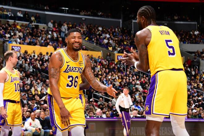 除了持续稳定发挥的三巨头之外,湖人队一众角色球员也值得夸赞,例如首发出战的斯马特与艾顿,两人搭配三巨头的首发阵容看起来效果非常好。