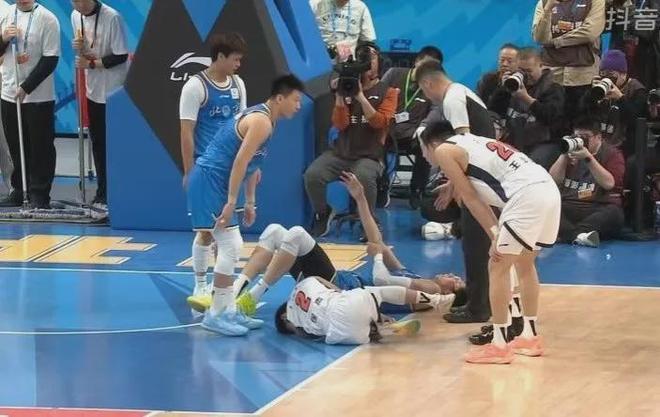 那是比赛第二节的一个回合,当时萨姆纳跟周琦出现了一次对抗,周琦失了重心,摔倒碰到徐杰。