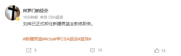 刘炜卸任新疆主教练:本季执教3胜6负 韩国助教姜正秀成代理主帅