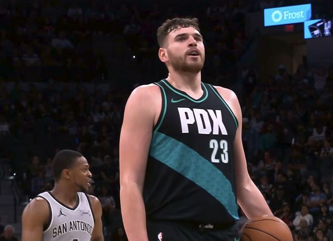背靠背上一场与鹈鹕的比赛,小杨只获得了1分半钟的出场时间,后三节直接被斯普利特弃用,最后一节即便开拓者大比分领先杨瀚森也没有获得出场。本场开拓者首节净胜马刺11分,第二节球队的进攻受到限制,连续打铁,单节20-27落后,上半场结束时开拓者55-51马刺。杨瀚森在这2节比赛中都有出场,有助攻有盖帽,不过没有投篮,开拓者后卫夏普10中1,这也太铁了。