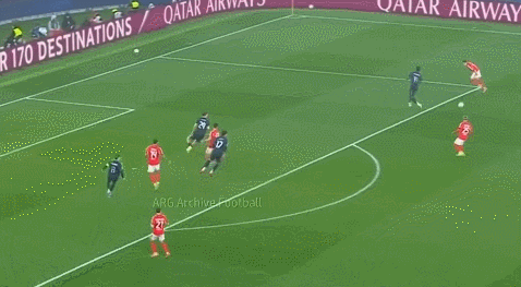 更精彩的一幕发生在上半场中段。普雷斯蒂安尼在禁区左侧得球,他没有选择传中,而是内切一步,右脚兜出一记美妙的弧线球。皮球越过了库尔图瓦的一米九九的十指关,“砰”的一声重重砸在横梁上弹出 。那一刻,光明球场的惊叹声盖过了雨声。