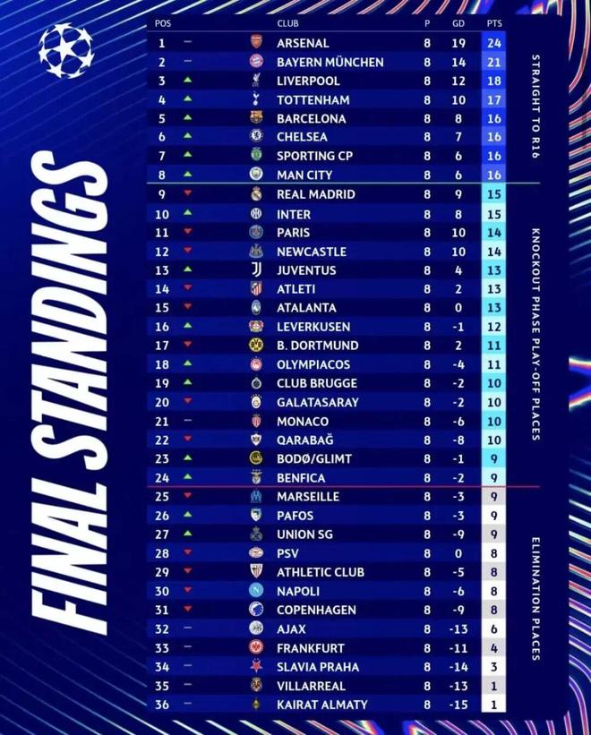随着第八轮战罢,欧冠全新的联赛阶段排名尘埃落定,出现了多起令人意外的结局。
