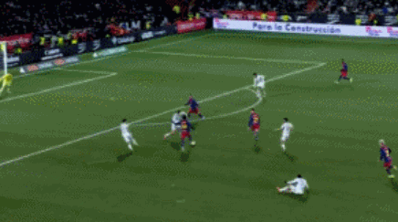 比赛第39分钟,德容送出斜塞,右侧的亚马尔劲射破门,为球队先拔头筹!
