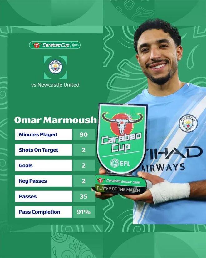 这场比赛是典型的“曼城式”杯赛胜利的,高效、冷静、毫无波澜。当选全场最佳的马尔穆什(2球,评分9.4)和策划多次进攻的赖因德斯,代表了曼城阵容厚度的。即便在下半场有所放松被伊兰加扳回一城,也没啥问题。