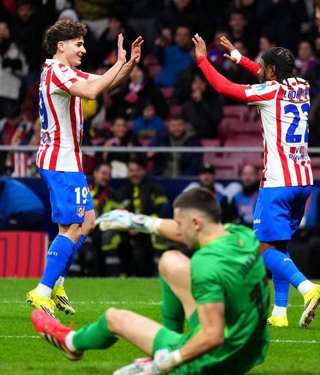 两球领先的马竞并未收手。第33分钟,阿尔瓦雷斯不停球转移,卢克曼包抄推射;上半场补时第2分钟,卢克曼左路倒三角回敲,阿尔瓦雷斯禁区前沿重炮挂网。互献传射,两个南美人用最简洁的方式肢解了巴萨的整条防守。