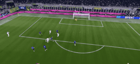 30分钟后,国米接连获得机会,劳塔罗错失良机,泽林斯基的射门越过门将,被布雷默门线解围。