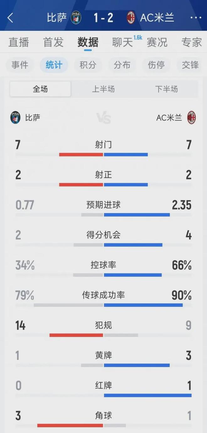 当比萨扳平比分时,米兰全队散发的不是“老子要弄死你”的霸气,而是“千万别再丢球”的恐惧。这种心理层面的脆弱,比战术漏洞更难修补。