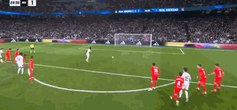 第44分钟,维尼修斯突破虚晃后射门,被皇家社会后卫挡出
