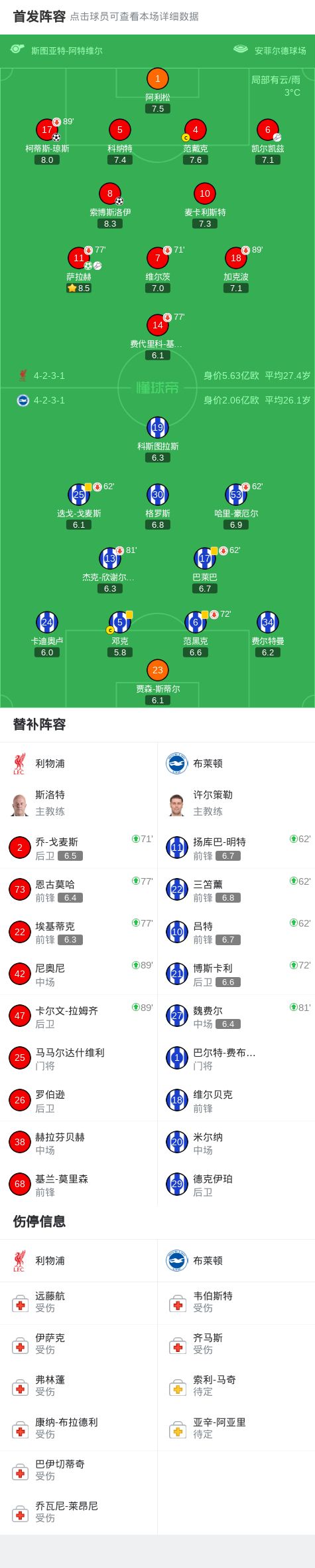北京时间2月15日英格兰足总杯 第四轮,利物浦对阵布莱顿。利物浦柯蒂斯-琼斯破门,索博斯洛伊破门,萨拉赫破门。最终比分利物浦 3-0 布莱顿。