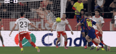 第24分钟,拉菲尼亚接球后的停顿搅乱了赫罗纳的防守,费兰·托雷斯兜射远角,皮球稍稍偏出。