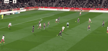 第33分钟,费尔明停球后横向盘带,起脚劲射,皮球颇具威胁。
