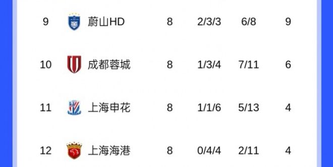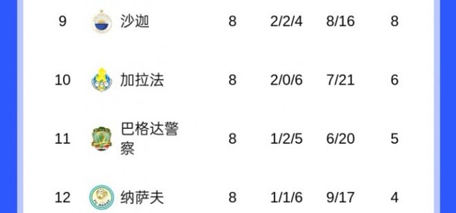大家只从东亚区来比较,其实如果放到西亚区,海港这个成绩也是西亚区倒数第一。看上图,排名西亚区倒数第一的纳萨夫也是4分,其净胜球为-8。因此,海港在前8轮战罢,其积分排名是全亚冠精英赛24支球队中最低的。
