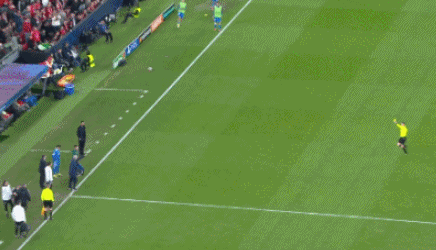 第85分钟,本菲卡的进攻,里奥斯被维尼修斯、卡马文加联合夹击撞翻在地,本菲卡获得任意球。