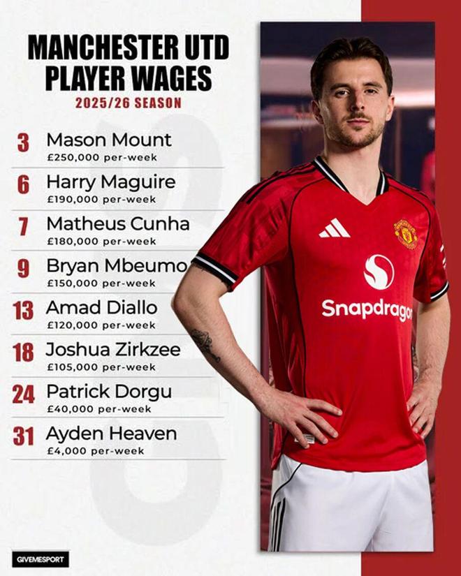 芒特的工资是另一拉爵看不过眼的问题。他坐享25万英镑周薪,在队内仅次于卡塞米罗(35万英镑)、拉什福德(32.5万英镑)和B费(30万英镑),与桑乔持平。卡塞米罗的表现拿35万英镑都让拉爵很不满意,更别说芒特了。