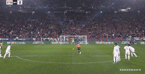 38’ 布迪米尔禁区内被库尔图瓦放倒,主裁起初判罚布迪米尔假摔,VAR随后介入,主裁在观看录像后改判点球。