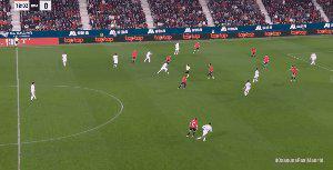 90’ 莫罗送出直塞,劳尔·加西亚小角度破门。此球起初被判越位,VAR随后介入,主裁确认进球有效,奥萨苏纳2比1领先皇马。