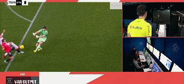 第34分钟,场上出现争议一幕。布迪米尔禁区内倒地,主裁判第一时间判罚其假摔并出示黄牌。随后VAR介入,主裁判观看大屏幕后做出改判的。取消黄牌,改判点球!第38分钟,布迪米尔亲自主罚命中,奥萨苏纳1-0领先皇马。
