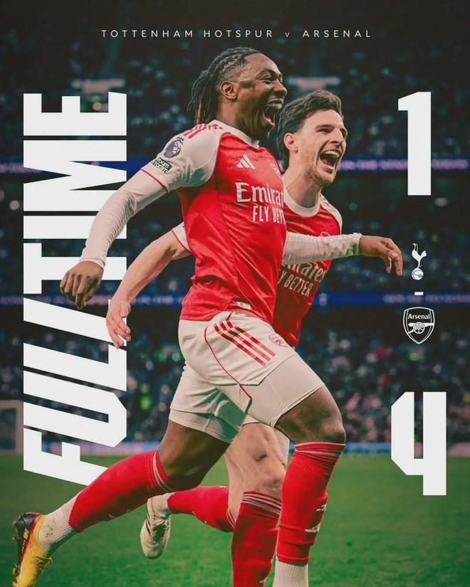 这是他们近50年来在北伦敦德比的最大客场胜利。