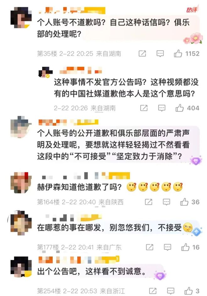 然而,许多网友对该道歉帖并不买账,认为这种涉事球员未亲自道歉、俱乐部官网无公告 及涉事海外平台并未同步发帖 的方式“看不到诚意”。
