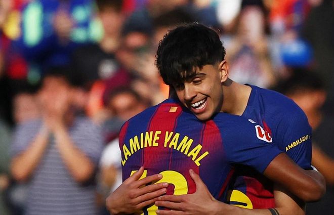 本场比赛巴萨排出4231阵型。莱万多夫斯基顶在最前面。亚马尔、奥尔莫和拉菲尼亚的进攻组合联袂出击。马克-贝尔纳尔和德容组成双后腰。孔德、埃里克-加西亚、赫拉德-马丁和坎塞洛4后卫首发出战。霍安-加西亚担任首发门将。费兰-托雷斯、费尔明-洛佩斯、佩德里、拉什福德和阿劳霍坐在替补席待命。