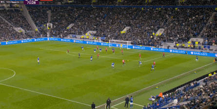 因为,从55到70分钟,埃弗顿几乎将曼联压在了半场范围内,他们用相当长线条的方式来发展自己的进攻: