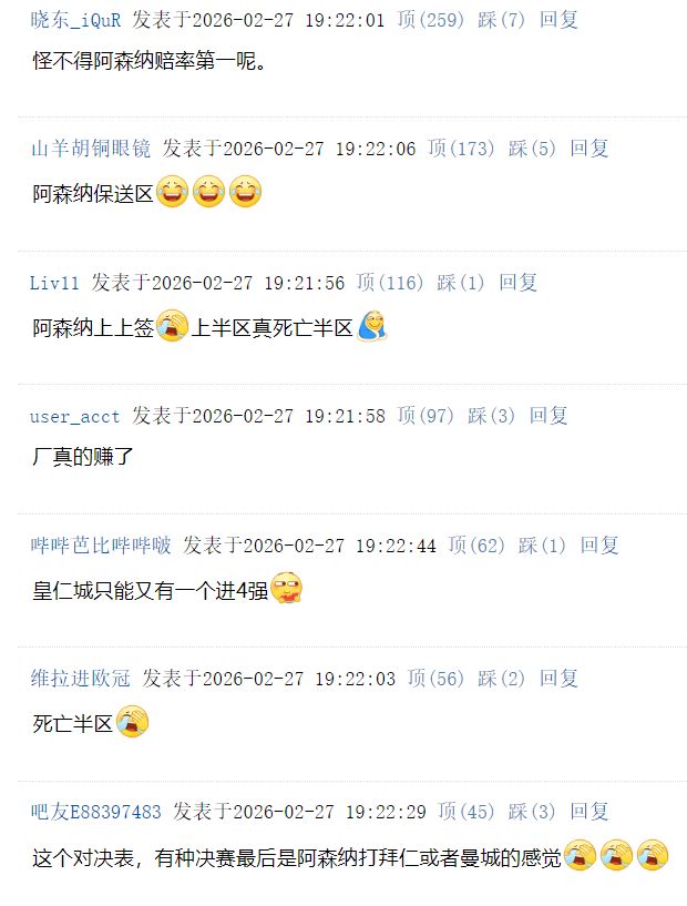 对此,国内球迷纷纷热议阿森纳的抽签结果:
