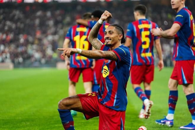 2026年西超杯,拉菲尼亚在半决赛和决赛都上演梅开二度,成为第二位单届西超杯打入4球的球员。