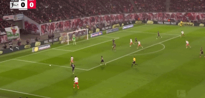第14分钟,小红书丨凯恩直塞,卡尔突入禁区传中,球传大了