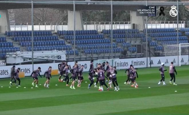 据报道,皇马全队今天开展了对阵比利亚雷亚尔赛前的备战训练,其中,米利唐、吕迪格、阿诺德、门迪仍然缺席,劳尔-阿森西奥、罗德里戈、卜拉欣-迪亚斯都参加了训练,楚阿梅尼因为被禁赛无法出战。