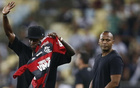 终于回归,比赛结束后阿劳霍被队友们高高抛起