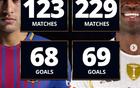 巴西天才西甲数据对比:内马尔123场68球49助,维尼修斯229场69球46助
