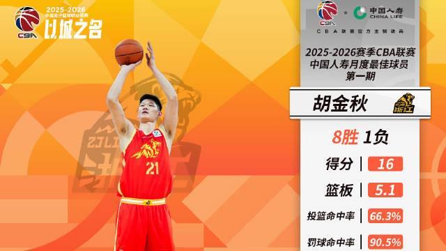 稳如磐石,胡金秋当选CBA第一期月度最佳球员